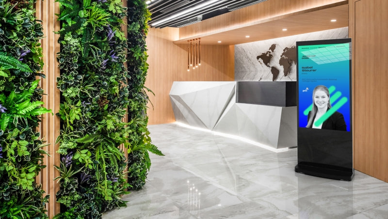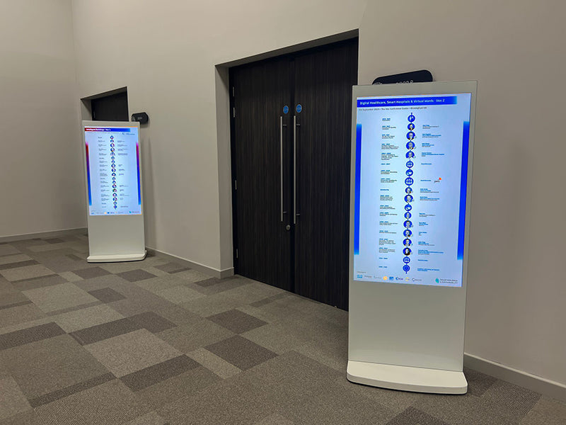 Digital Freestanding Poster Screen Totem To Elevate Your Space! It comes in black or white colour. Ideal for receptions, retail, hotels, restaurants, schools, University, Gallery, and more. Explore the possibilities!